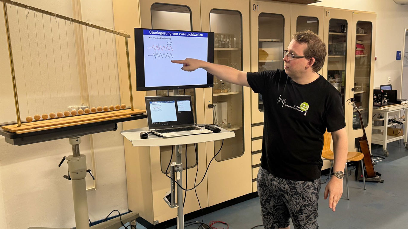 Mit der U-Bahn ging es weiter in den Südwesten Berlins zum Max-Planck-Institut für Bildungsforschung in Dahlem. Hier erwartete mich eine Kunstinstallation mit spielerischen Lernmodulen und einem fiktiven Gemini-Porträt von Iyad Rahwan, das unsere Vorstellung von Identität und künstlicher Repräsentation infrage stellte. Unter freiem Himmel lauschte ich anschließend einer spannenden Podiumsdiskussion über die Beziehung zwischen AI, Kunst und kulturellen Narrativen – ein intellektueller Ausklang in einer wunderbar entspannten Atmosphäre. Der letzte Stopp meiner langen Nacht führte mich mit einem Shuttlebus zur Freien Universität Berlin. In der Fakultät für Physik wurde mir von Oliver Gückstock ein Laser-Experiment vorgeführt, das mich nachhaltig beeindruckt hat. Ohne jegliches Mikrofon, rein durch Lichtwellen, nahm der Laser meine Beatbox-Sounds auf und wandelte sie in eine digitale Audio-Datei um. Ein nahezu magischer Moment, in dem sich meine Leidenschaft für Klang und neue Technologien auf faszinierende Weise verbanden. So klangvoll endete eine Nacht, die mir gezeigt hat, wie zugänglich, inspirierend und überraschend Wissenschaft heute sein kann.