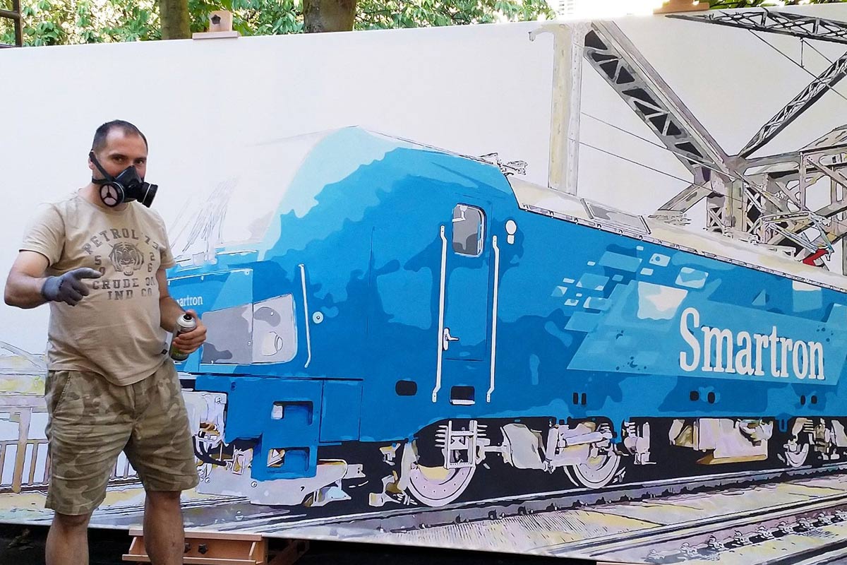 Ich wurde beauftragt, die Smartron Elektrolokomotive für den Messeauftritt von Siemens Mobility AG auf der InnoTrans, der internationalen Leitmesse für Bahn- und Verkehrstechnik in Berlin, künstlerisch in Szene zu setzen.